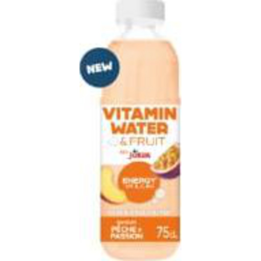 Eau Plate Aromatisée Energy Pêche Passion Vtamin et Fruit JOKER. détaillés sur l'emballage extérieur.