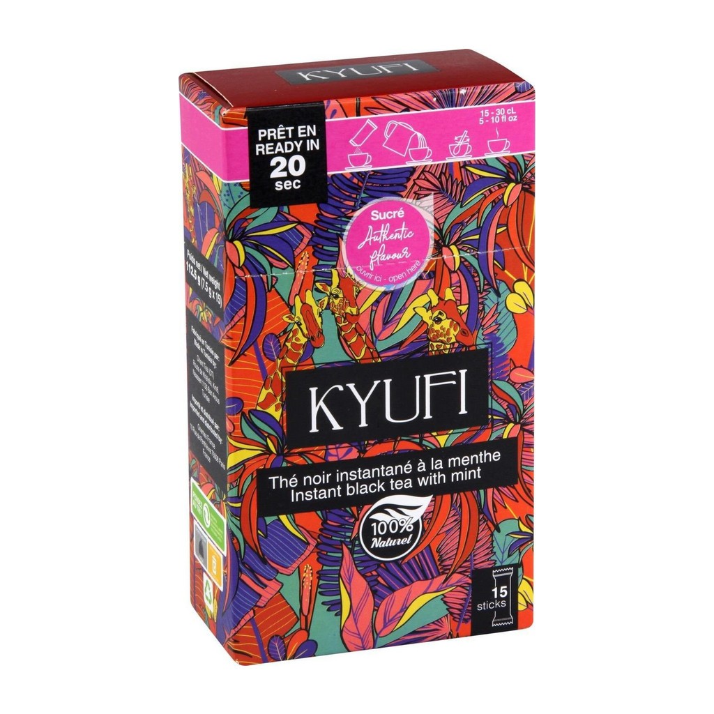 Thés de la marque KYUFI. KYUFI Thé noir instantané menthe (les 15 sticks de 7,5g). EAN 6191469700564.