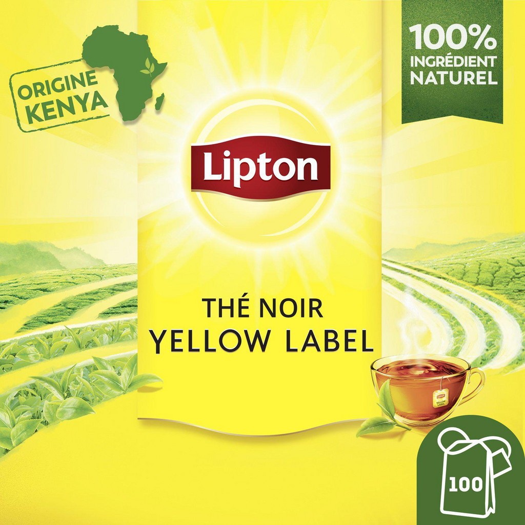 LIPTON Thé noir yellow label, origine Kenya (la boite de 100 sachets). détaillés sur l'emballage extérieur.